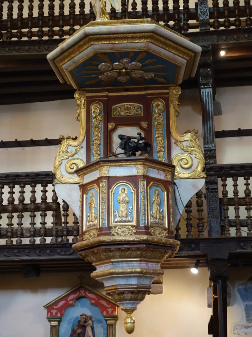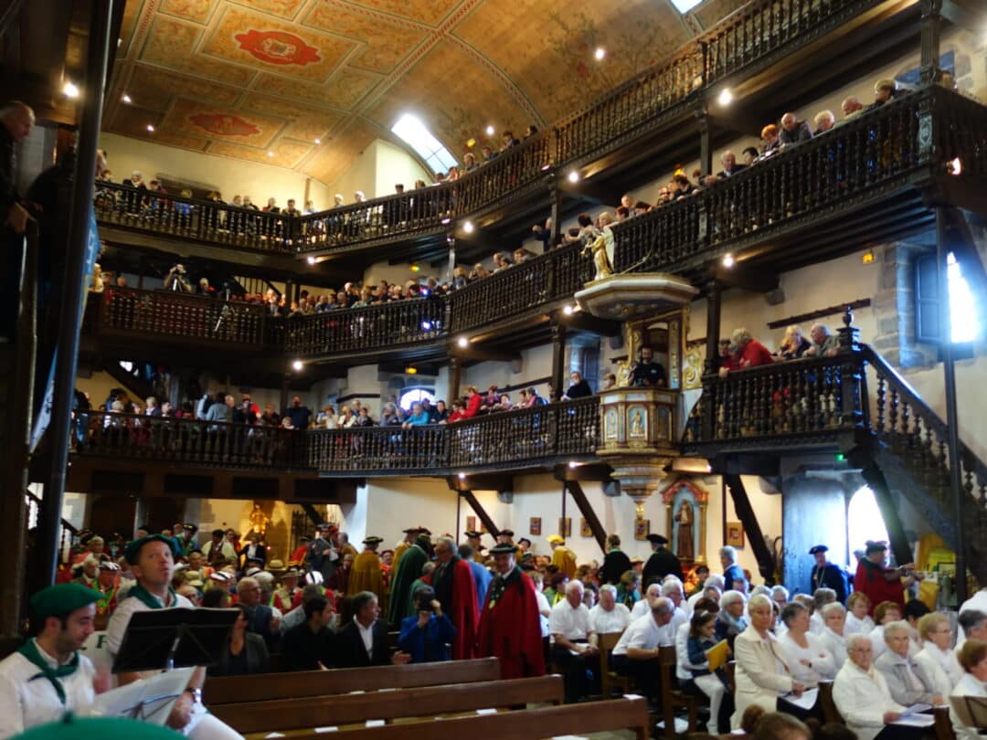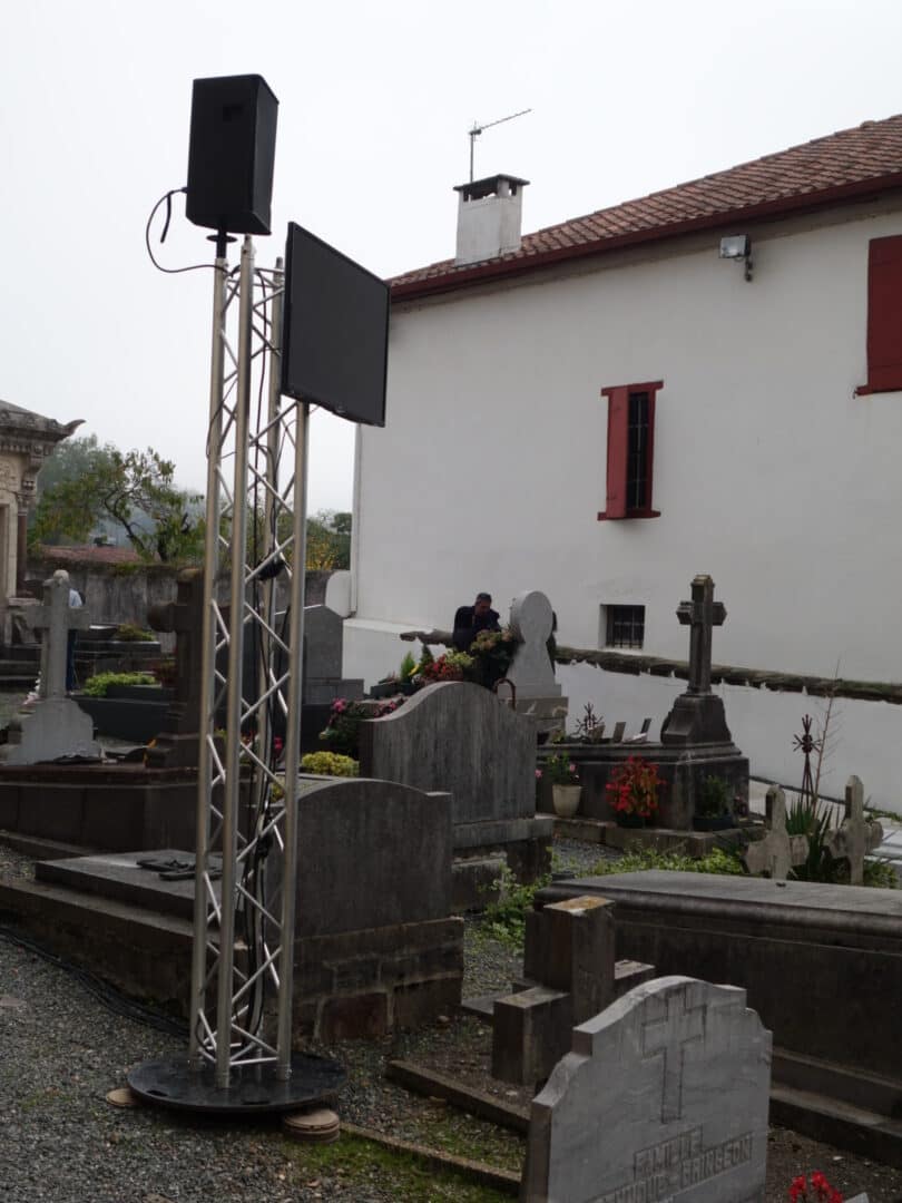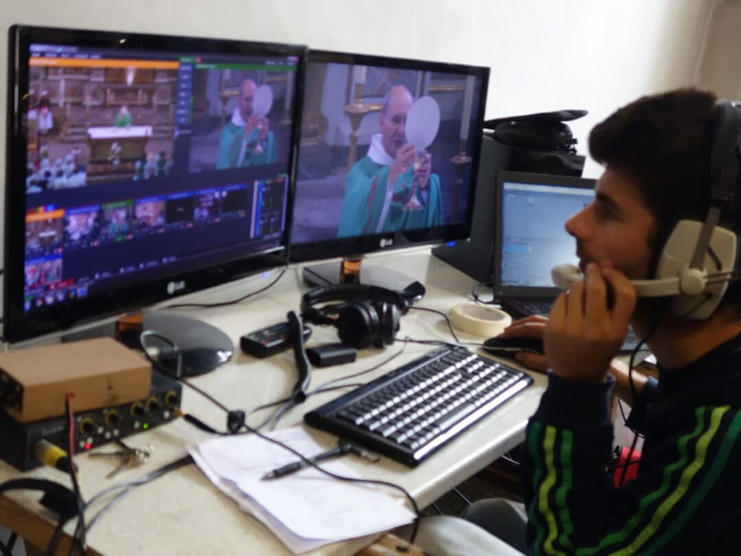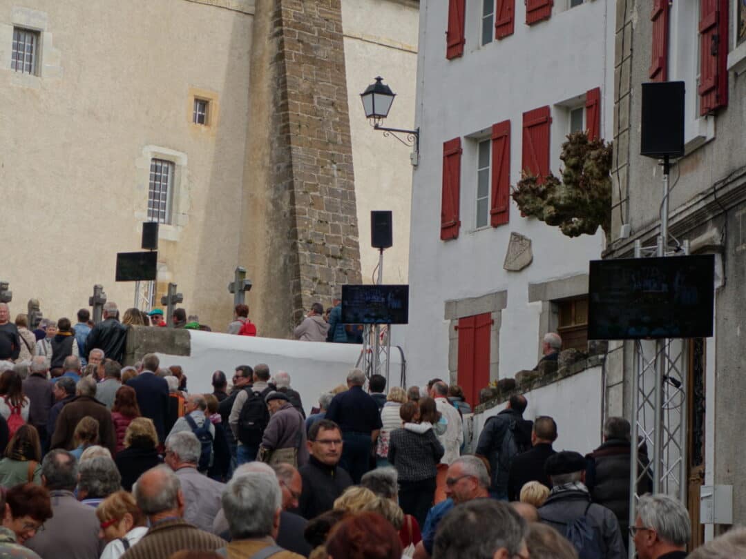 Retransmission de la messe sur écran à l’extérieur de l’église à l’occasion de la fête des piments 2016.