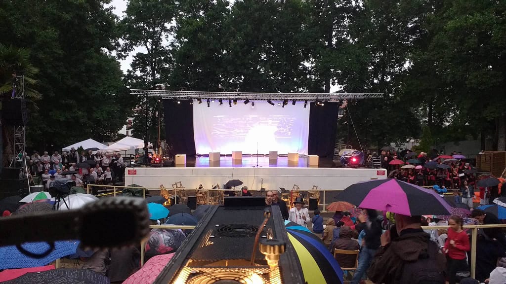 Ce spectacle mis en scène et imaginé par Xabi Soubelet regroupe pas loin de 300 intervenants par le biais d’associations luziennes. On y retrouve des chorales, des danseurs, des musiciens, de 7 à 77 ans. Il s’est déroulé dans le magnifique théâtre de la nature, au parc Ducontenia.
